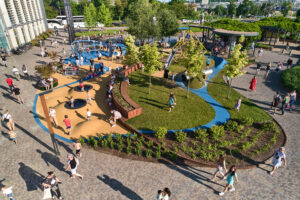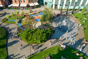 The food offer is varied and caters to the needs of many– from those looking for quick meals to those seeking more leisurely coffee or lunch meetings – making the square not only a thoroughfare, but also a lively social hub that seamlessly connects retail, leisure, and dining into a coherent urban structure.
