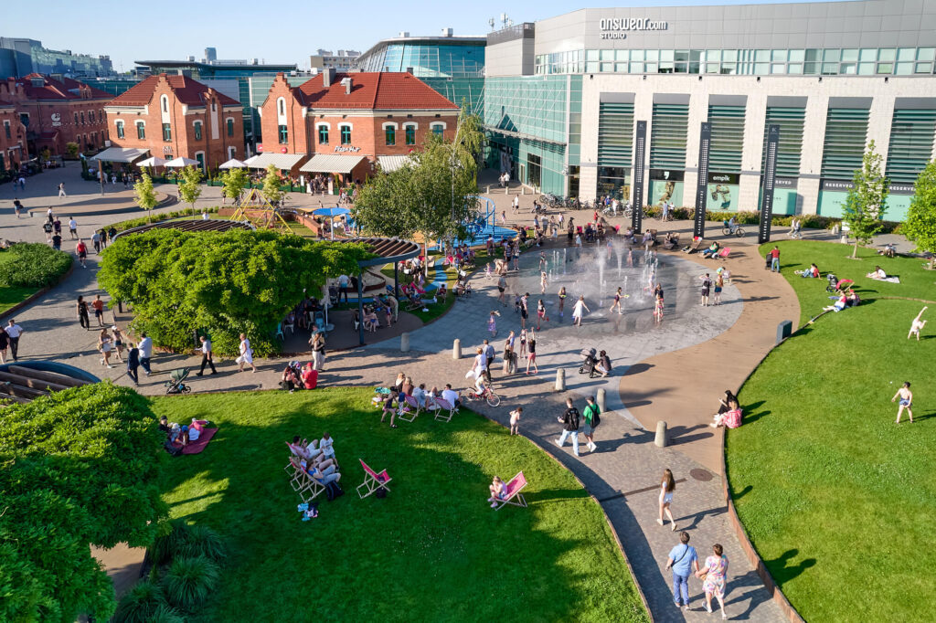 The square in front of Galeria Kazimierz is also distinguished by a diverse range of restaurants and cafés complementing the role this area plays. Seasonal outdoor seating further enriches the space, encouraging visitors to relax and spend time outdoors.