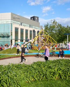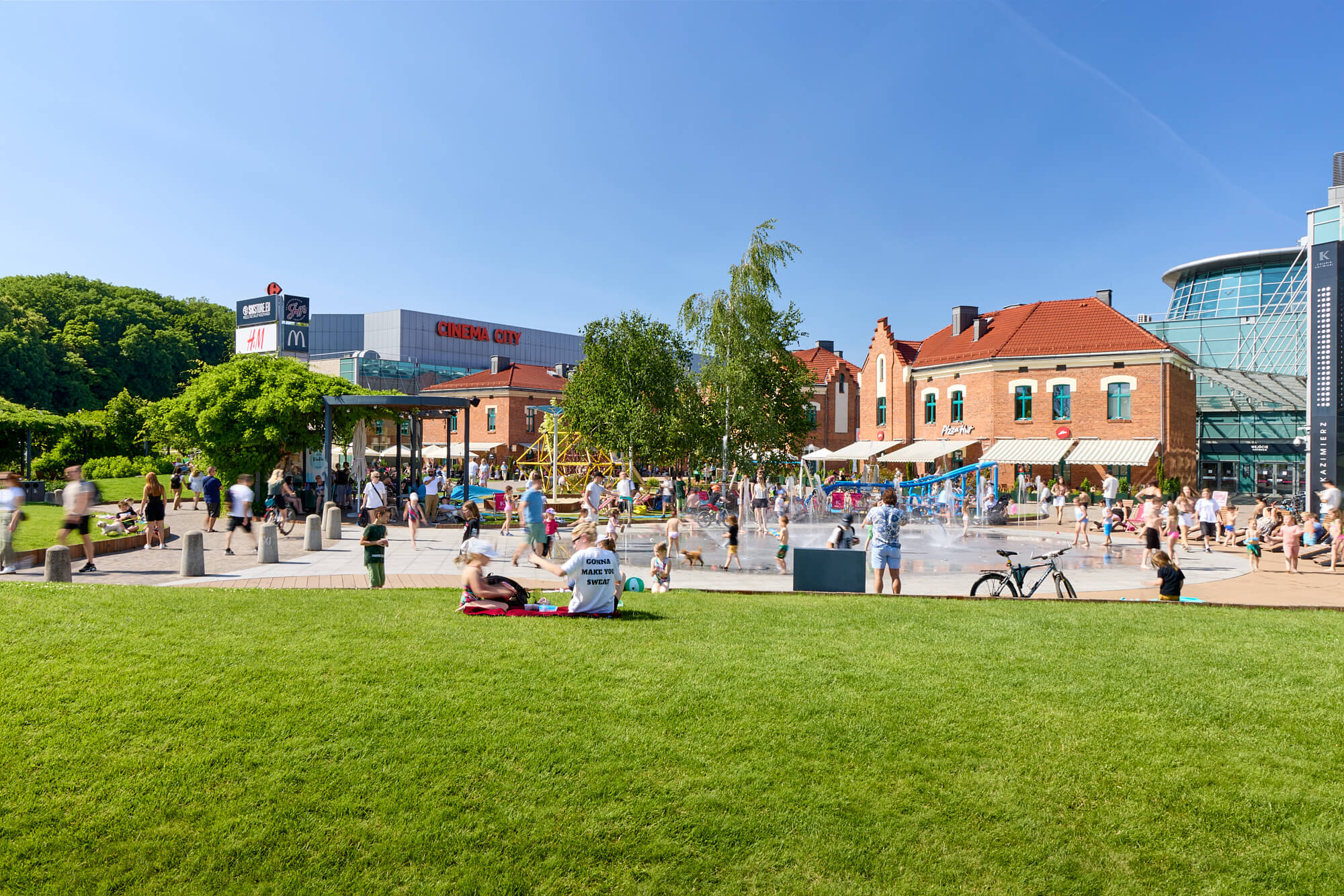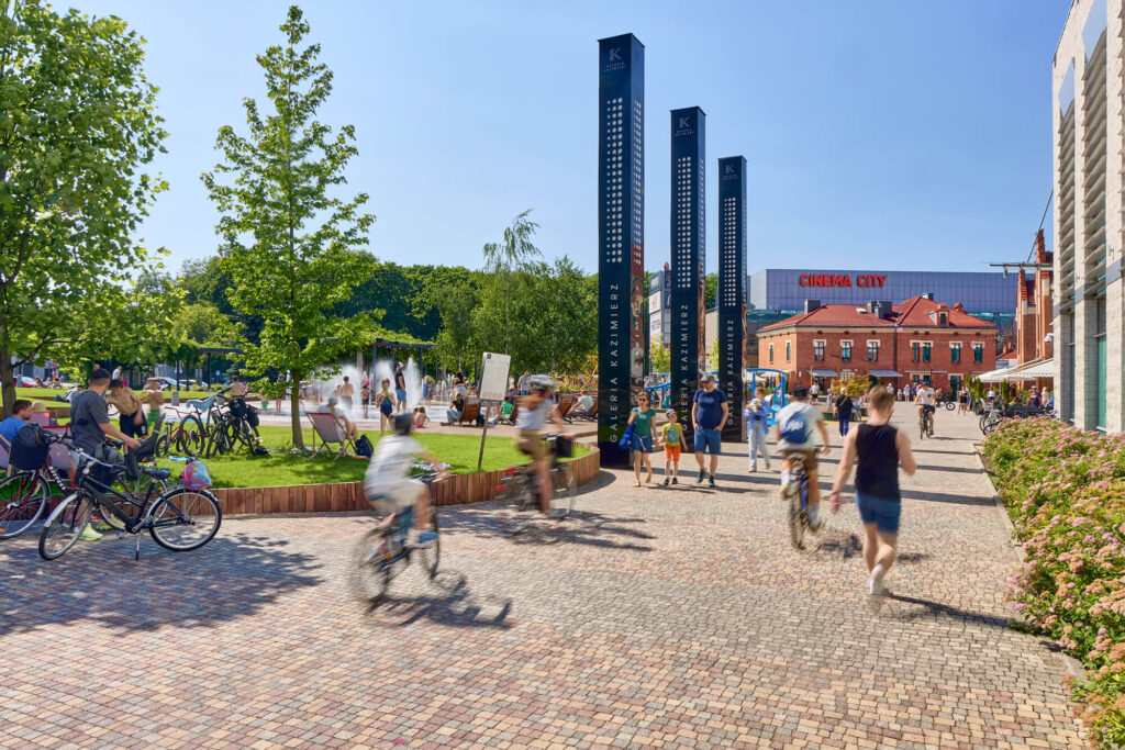 The square in front of Galeria Kazimierz forms an important part of the local public space in this part of Kraków. This open and well-organised area serves as a meeting place and a natural extension of the centre towards the city. It regularly hosts outdoor events, community initiatives and cultural activities, which all enhance its vibrant urban character. Its size and accessibility make it suitable for both short visits and longer stays.